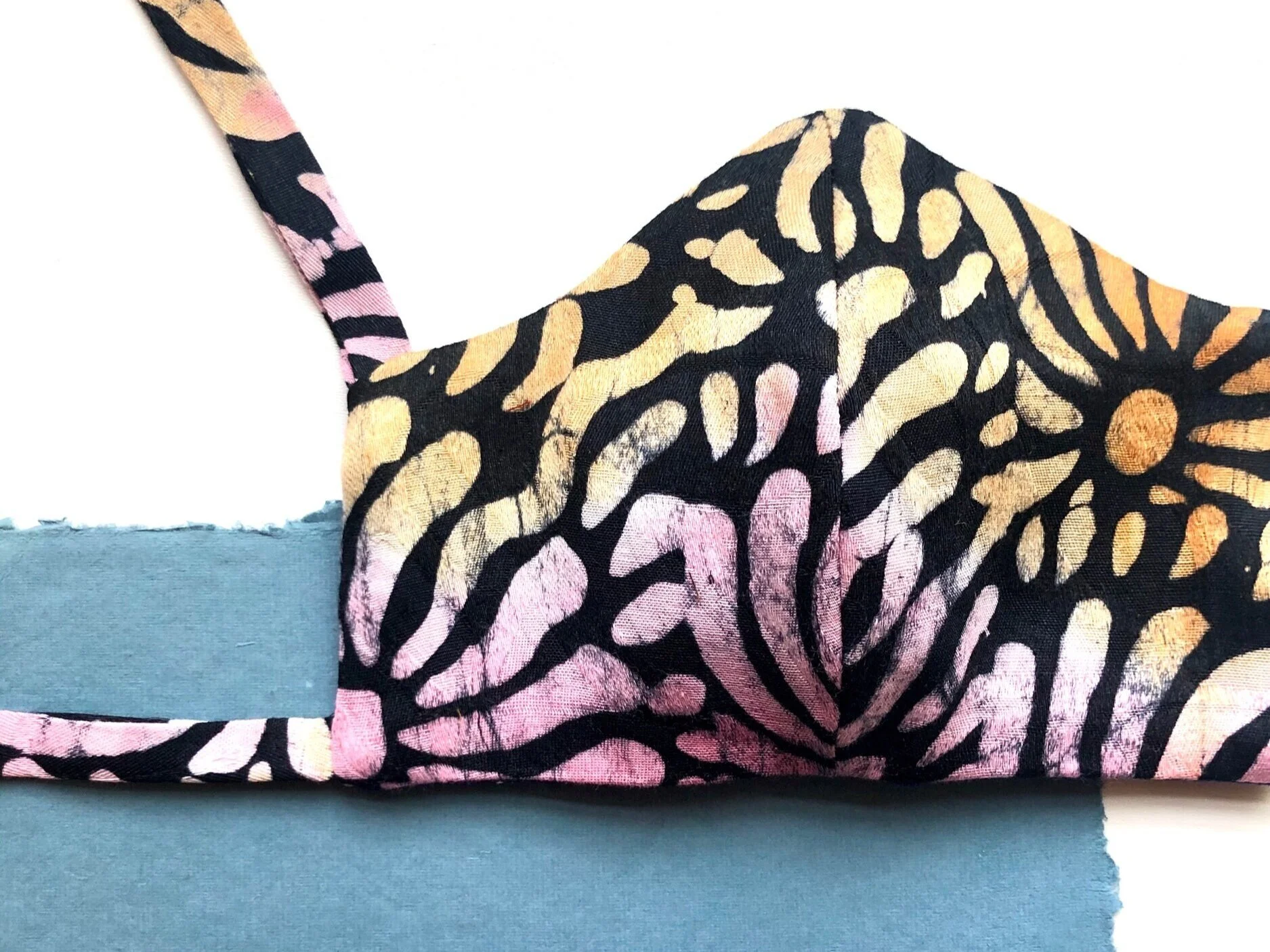 Adire Fashion Place custom-made this floral print just for us, and it became one of our best-selling masks.
