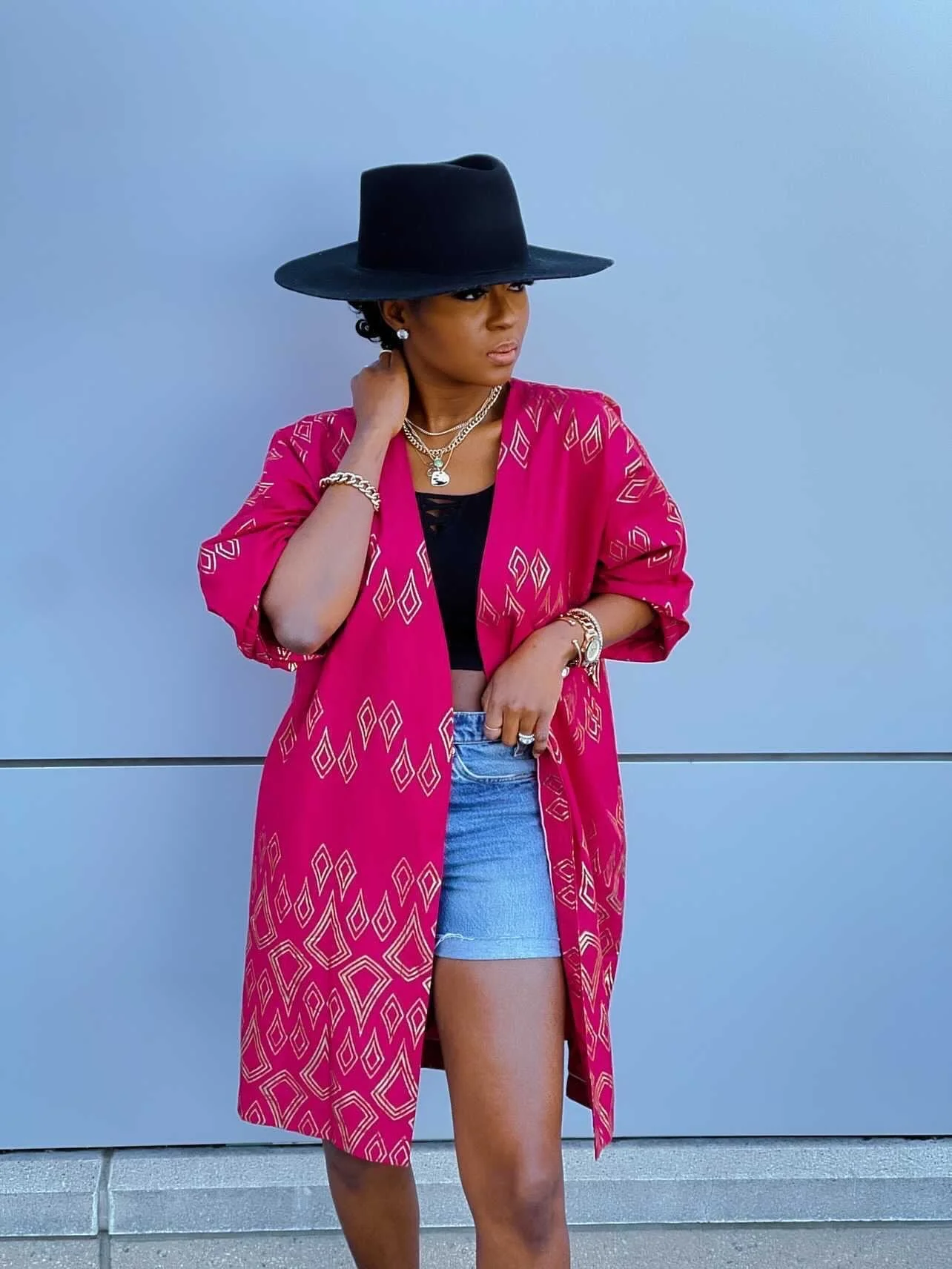 Fashion enthusiast @stefanyboateng shows us multiple ways she styled her Afrothreads robe; we love how she made use of her own belt and showed different ways to layer the robe over jeans.