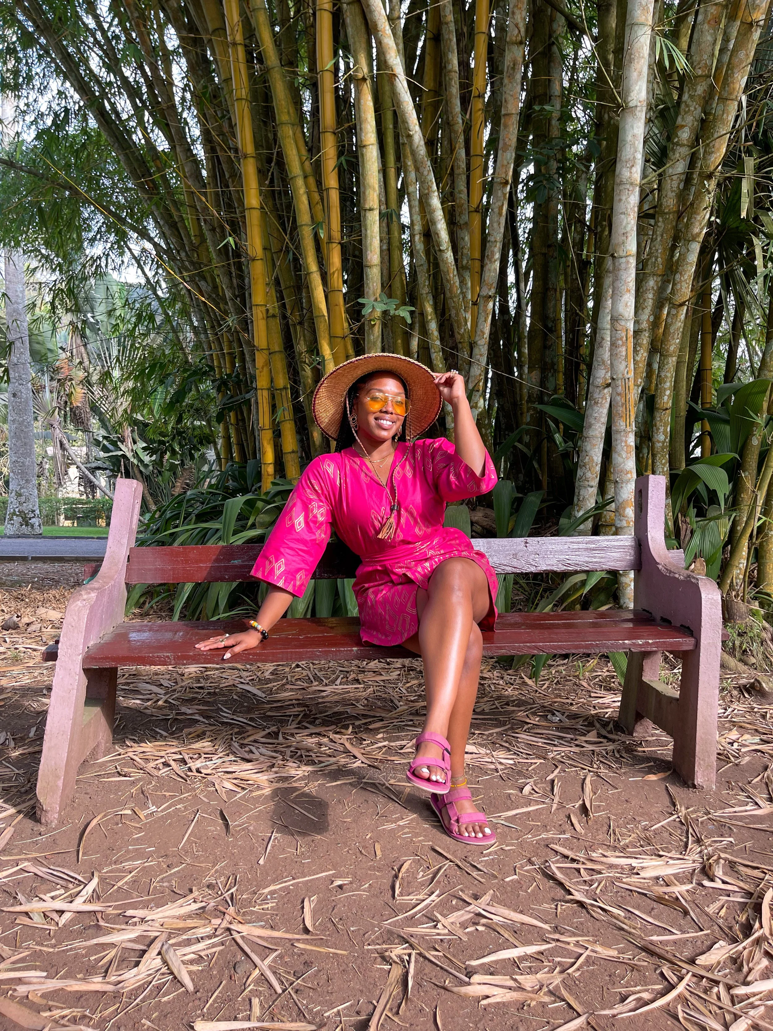 On Christmas Day in Ghana, Shadea wore her Afrothreads robe over jean shorts and added a matching straw hat.